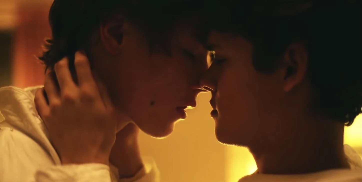 Wilhelm and Simon kissing when the guards aren't looking.