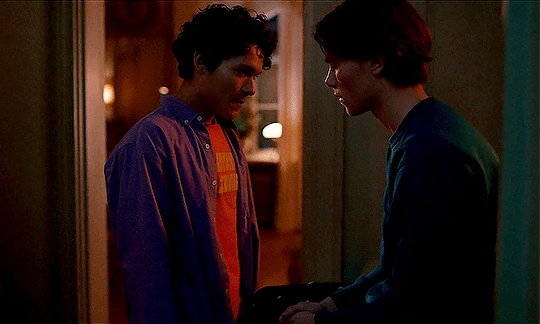 She comes to speak with him in his dorm after the video is released. She initially greets him by gently pushing his hair out of his face, but the next clip of them is much more impersonal, where she is sitting at his desk and then moves to continue their conversation next to him on his bed. She tells her son that they can't pretend as if the rumors don't exist, but he can still deny them as his face wasn't clear in the video. She also lets him know that he shouldn't be seen with Simon for the time being, so as not to fuel the rumors any more. While leaving, she strokes his cheek and runs a hand down his arm as a goodbye.